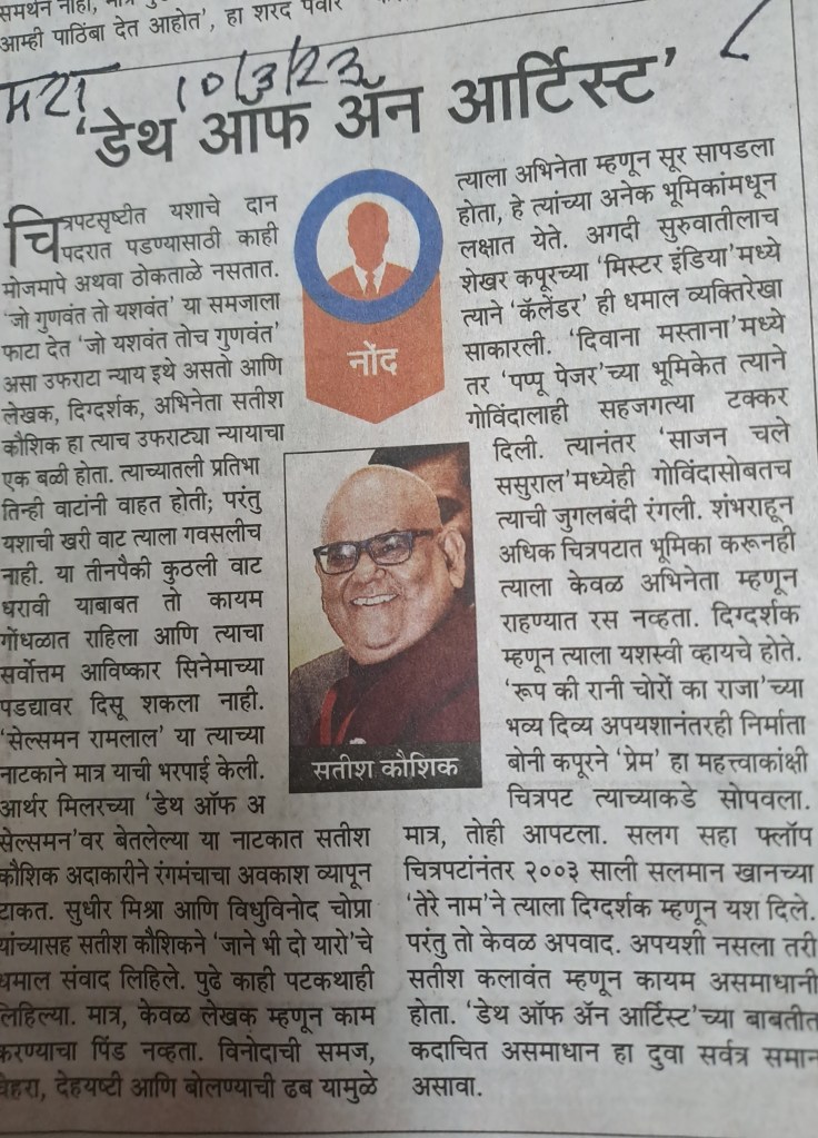 कौशिक–हरहुन्नरी व्यक्ति– महाराष्ट्र टाइम्स मधील स्फुट–12.3.23