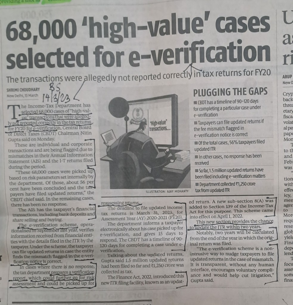 ЁЯЩПЁЯЩПЁЯЩПЁЯЩПЁЯЩПE-Verification –What it is and what are income tax act provisions—Courtesy Business Standard– 14.3.23