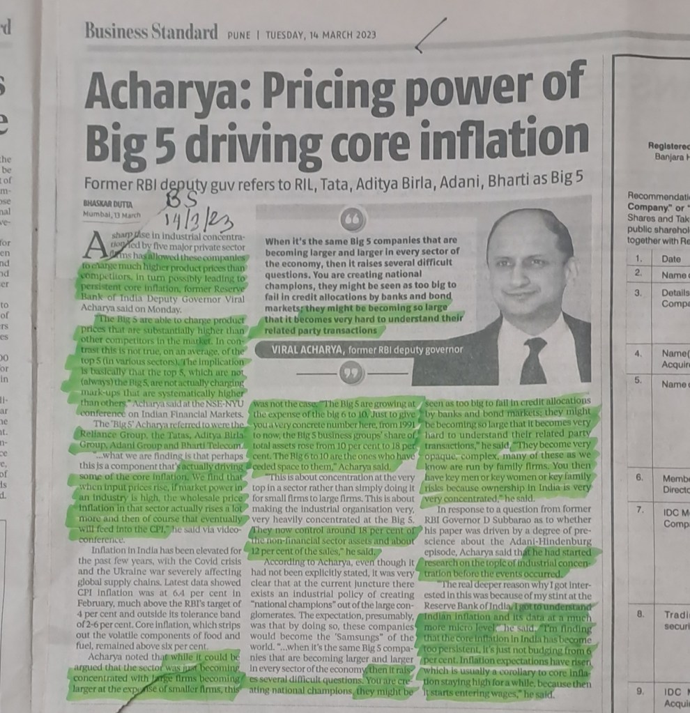 ЁЯЩПЁЯЩПЁЯЩПЁЯЩПЁЯЩПЁЯЩПЁЯЩПPower of Big Five– What Ex RBI Governor Mr Acharya seeks to suggest– Courtesy Business Standard 14.3.23