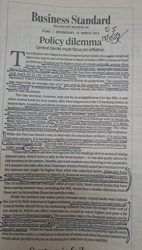 ЁЯЩПЁЯЩПЁЯЩПЁЯЩПЁЯЩПBusiness Standard editorial warns against complacency in India’ fight against inflation–15.3.23