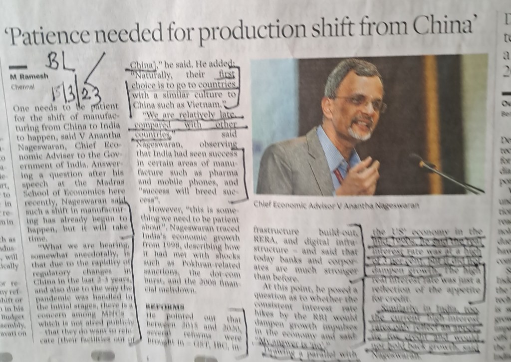 ЁЯЩПЁЯЩПЁЯЩПCEA Mr. Nagrswaran –at Madras School of Economics [1] Whether high rate of interest would dampen growth impulses—his reply was a categorical ” no” [2] to buttress his argument, he compared US situation in 1990s when the real rate of interest there was at a high of 3% but it did not dampen their growth [3] he further surmised that current high rates of interest , only reflect an appetite for credit and would not hold back growth. —courtesy BusinessLine