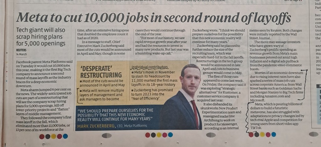 ЁЯЩПMeta predictions may unnerve us — Courtesy Business Standard 15.3.23