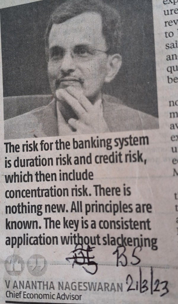 CEA opinion about effects on banking system in India [ in the wake of bank failures in US ] Courtesy BusinessLine 21.3.23