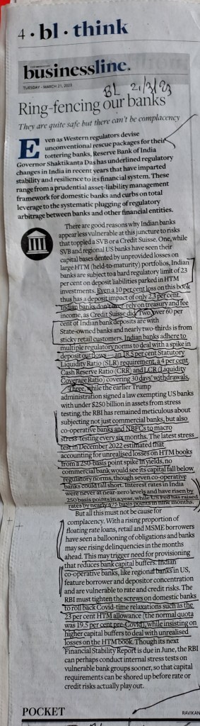 ЁЯЩПЁЯЩПЁЯЩПЁЯЩПЁЯЩПЁЯЩПЁЯШАIs Indian banking system safe? BusinessLine editorial throws enough light–21.3.23