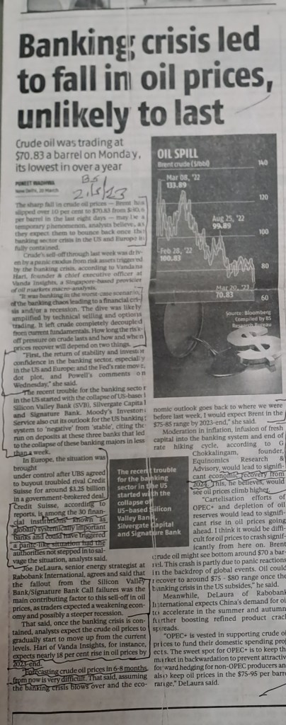 ЁЯЩПЁЯЩПЁЯЩПЁЯЩПЁЯЩПWhat led to fall in oil prices? Analysis worth knowing –Courtesy Business Standard 21.3.23