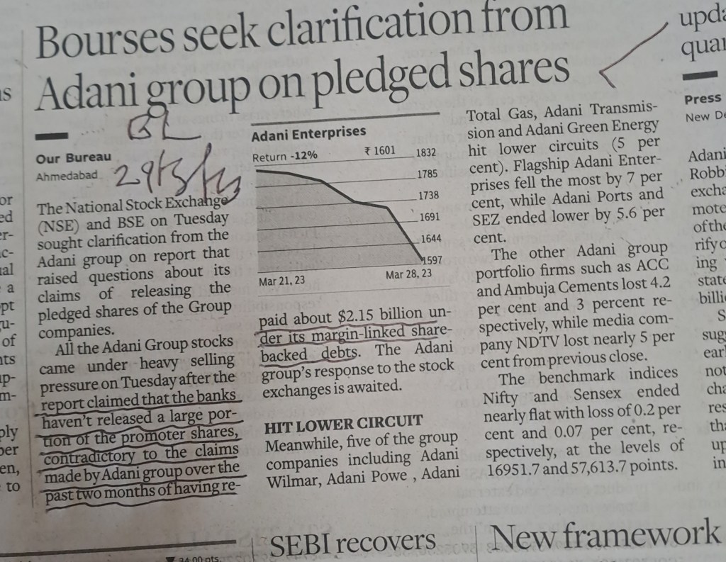 ЁЯЩПBourses seek information from Adani group –Courtesy BusinessLine 29.3.23