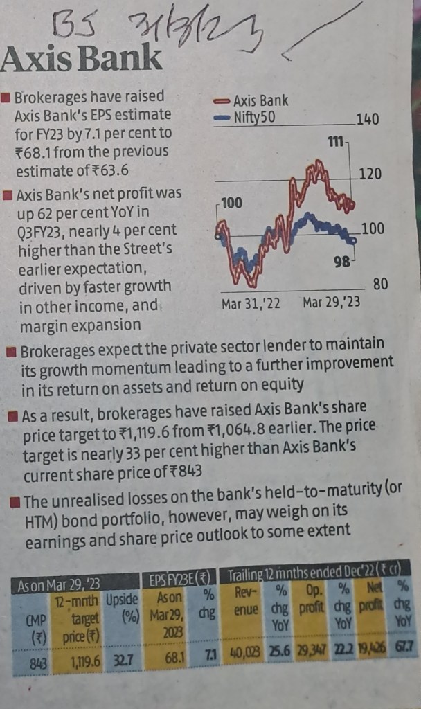 ЁЯЩПAxis Bank prospects — Courtesy Business Standard 31.3.23