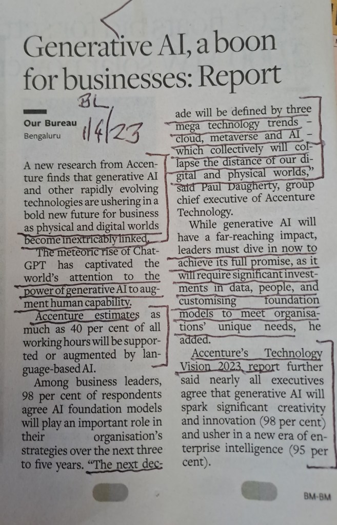ЁЯЩПAI–a boon ? Accenture report –Courtesy Business Standard 1.4.23