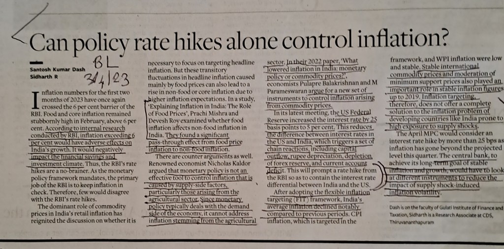 ЁЯЩПЁЯЩПЁЯЩПWhat can control inflation? Is rate hike is the solution? Courtesy BusinessLine 3.4.23