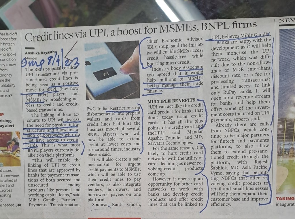 ЁЯЩПЁЯЩПЁЯЩПЁЯЩПЁЯЩПEffect of credit lines VIA UPI — Courtesy BusinessLine 8.4.23