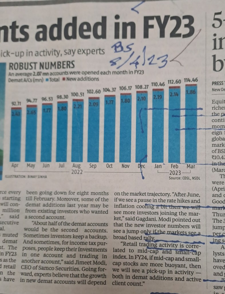ЁЯЩПDemat accounts increase by 2.07 million in FY 23 Courtesy Business Standard 8.4.23