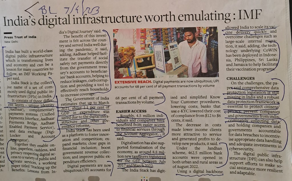 ЁЯЩПЁЯЩПЁЯЩПЁЯЩПЁЯЩПIMF says India Digital infrastructure –worth emulating–Courtesy BusinessLine 7.4.23