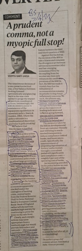 ЁЯЩПЁЯЩПЁЯЩПЁЯЩПЁЯЩПMPC 6.4.23 -SBI Economist – Courtesy Business Standard 7.4.23