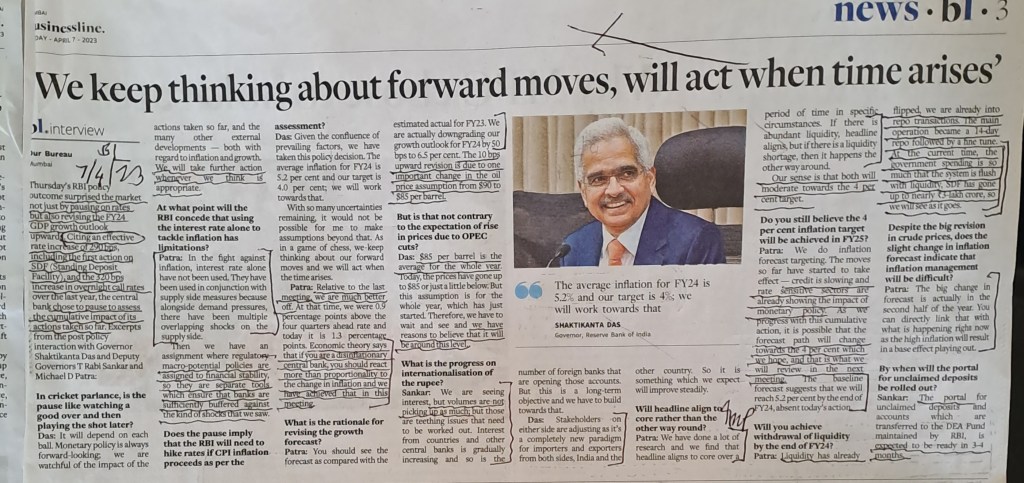 ЁЯЩПЁЯЩПЁЯЩПЁЯЩПЁЯЩПMPC – RBI GOVERNOR– Courtesy BusinessLine 7.4.23