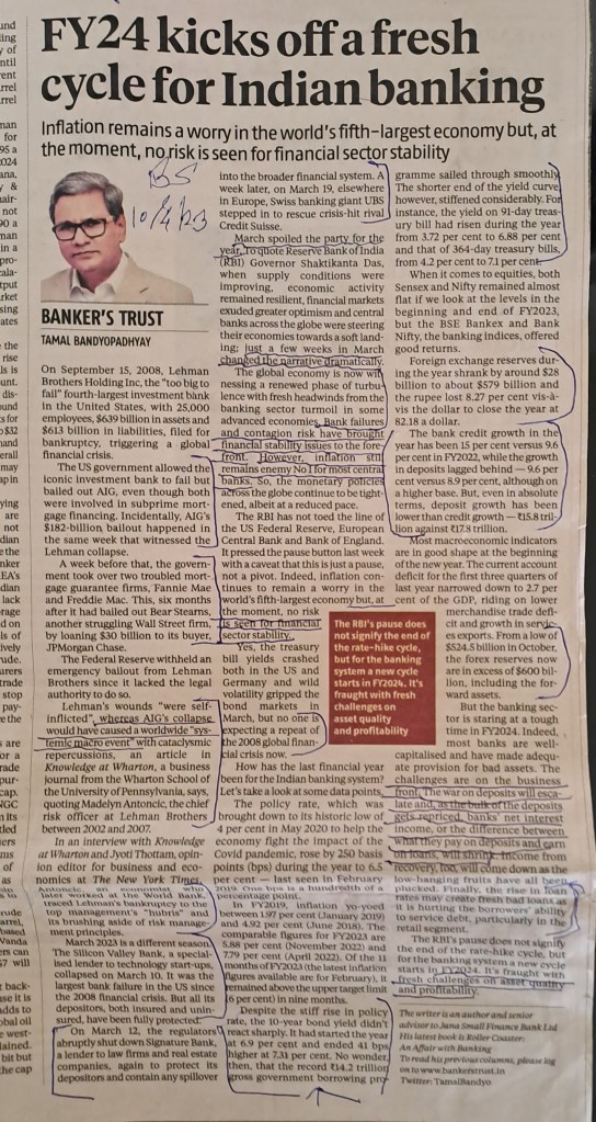 ЁЯЩПЁЯЩПЁЯЩПЁЯЩПЁЯЩПProspects for banking industry in FY 24 — Courtesy Business Standard 10.4.23