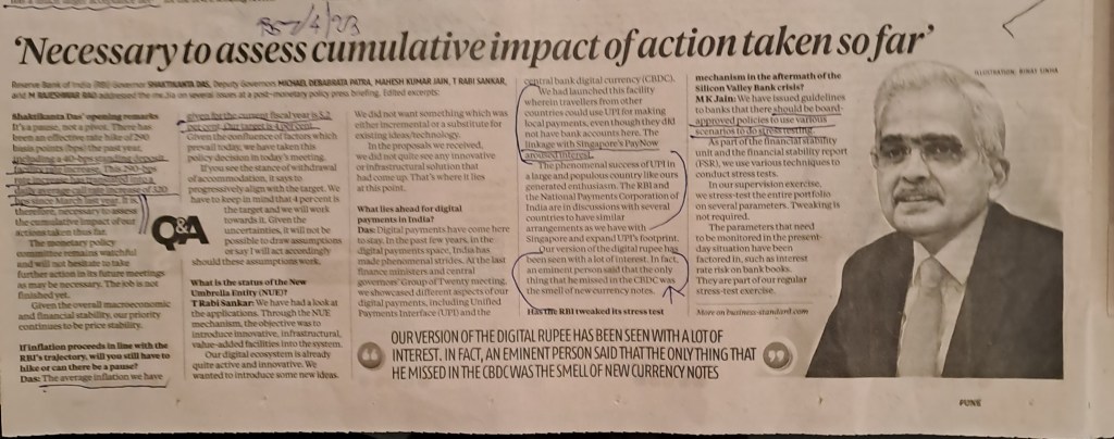 ЁЯЩПЁЯЩПЁЯЩПЁЯЩПЁЯЩПRBI Governor- MPC 6.4.23 -Courtesy Business Standard 7.4.23