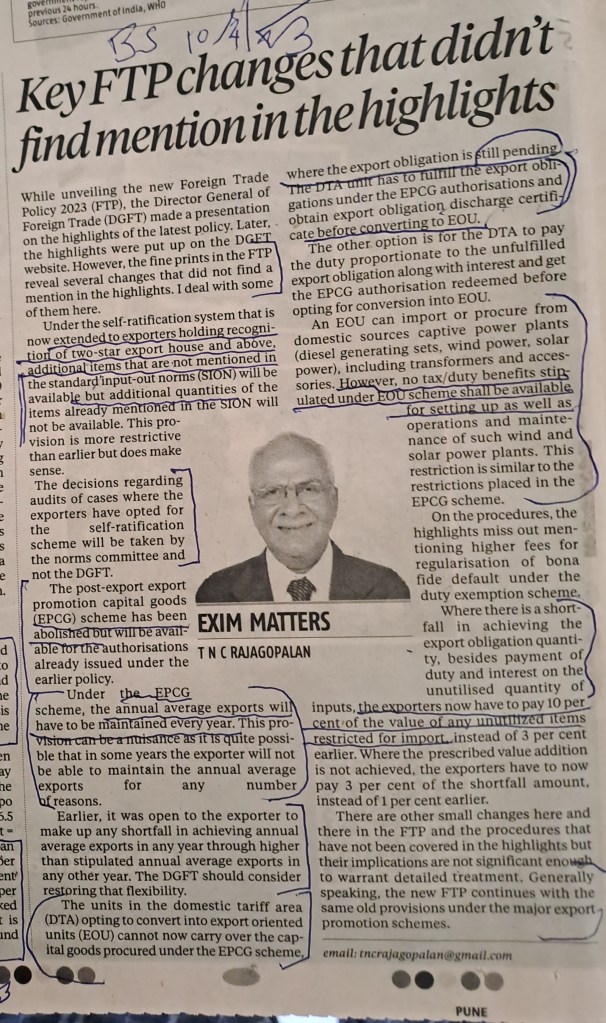 ЁЯЩПЁЯЩПЁЯЩПForeign Trade Policy–Courtesy Business Standard 10.4.23
