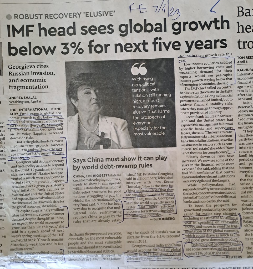 ЁЯЩПЁЯЩПЁЯЩПIMF pessimistic about global growth– says less than 3% for next 3 years –Courtesy Financial Express 7.4.23