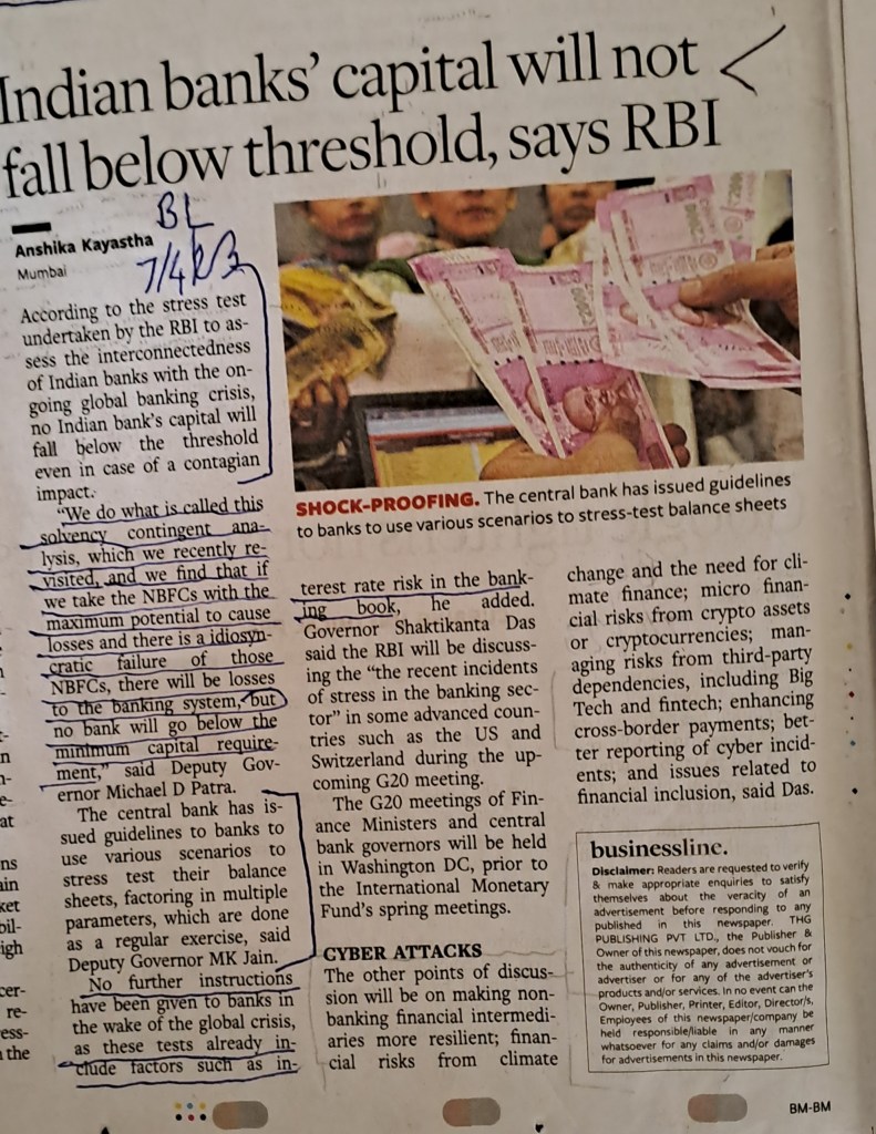ЁЯЩПЁЯЩПЁЯЩПIndian Banks capital not likely to fall below threshold Courtesy BusinessLine 7.4.23