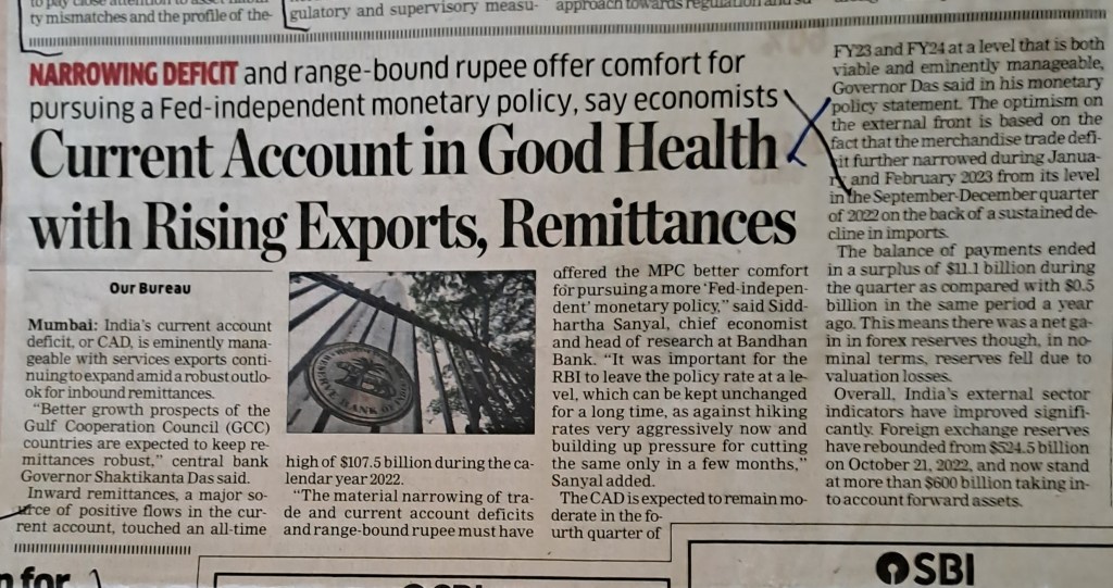 ЁЯЩПCAD on track –Courtesy Economic Times 7.4.23