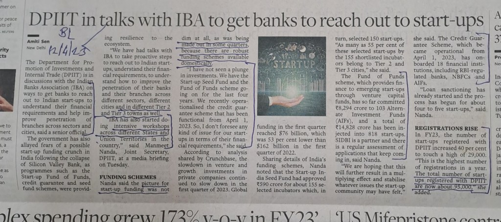 ЁЯЩПGovernment reaches out IBA to spur funding to Start ups Courtesy BusinessLine 12.4.23