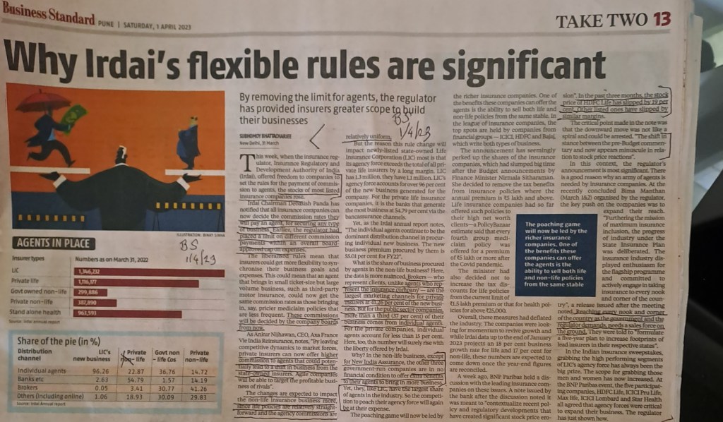 ЁЯЩПЁЯЩПЁЯЩПЁЯЩПЁЯЩПInsurance Sector expenses–New rules by Insurance Sector regulator–could be a game changer –Courtesy Business Standard 1.4.23