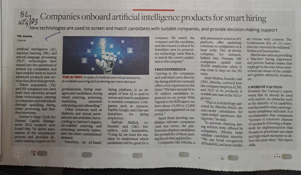 Recruitments –via AI ? Courtesy BusinessLine 15.4.23