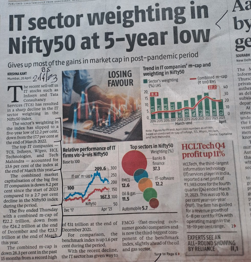 ЁЯЩПЁЯЩПЁЯЩПIT Sector at 5 year low vis a vis NIFTY 50 — Courtesy Business Standard 21.4.23