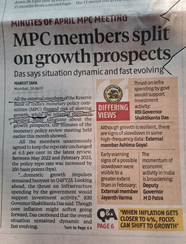Growth prospects–MPC members split–Courtesy Business Standard April 23