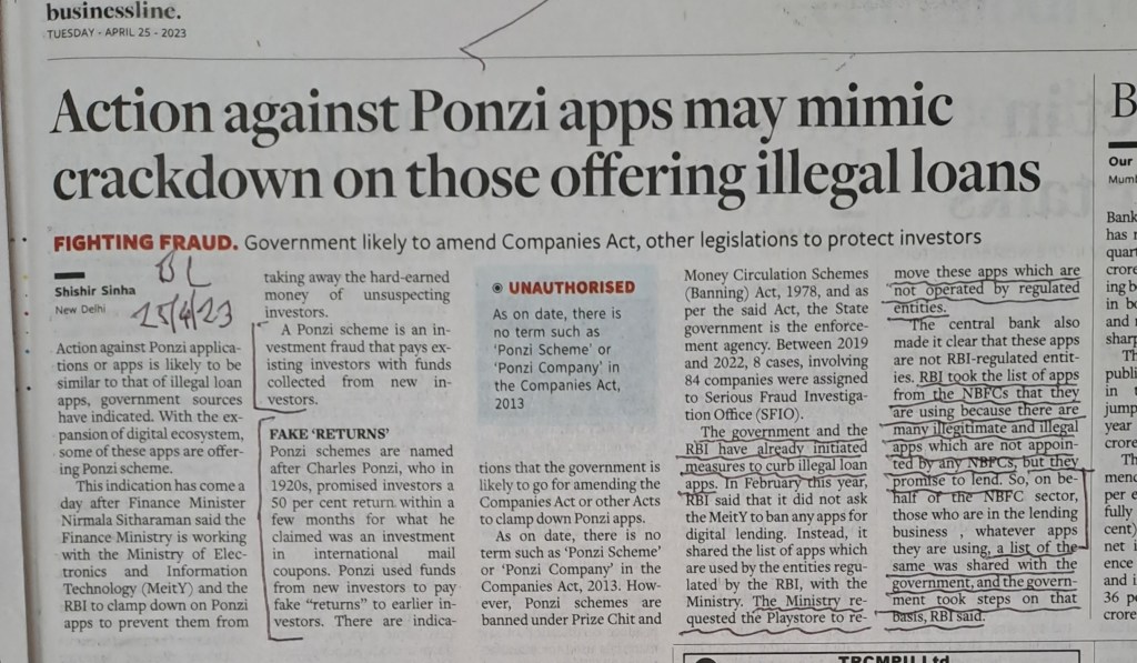 ЁЯЩПPonzi Apps similar to illegal loans ? — Courtesy BusinessLine 25.4.23