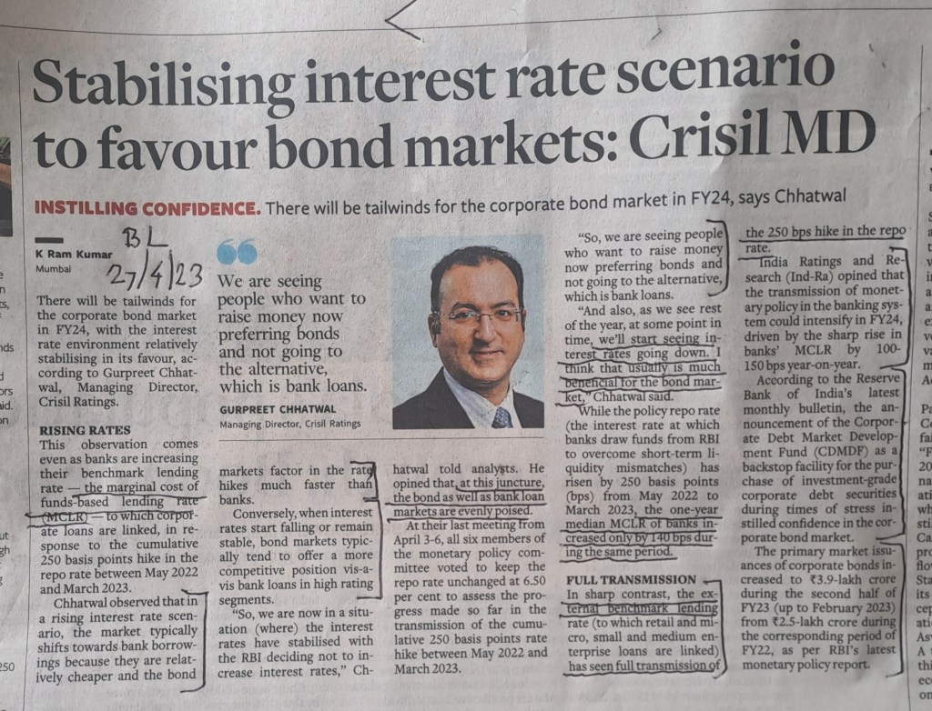 ЁЯЩПЁЯЩПЁЯЩПDetailed analysis by CRISIL as to how bond markets function –Courtesy BUSINESSLINE 27.4.23