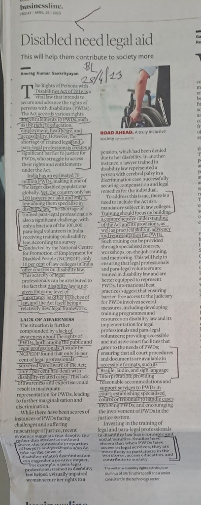 ЁЯЩПЁЯЩПЁЯЩПЁЯЩПЁЯЩП700 million persons with disabilities [ PWD ] and only 100 advocates per 1 lac – – Courtesy BusinessLine 27.4.23
