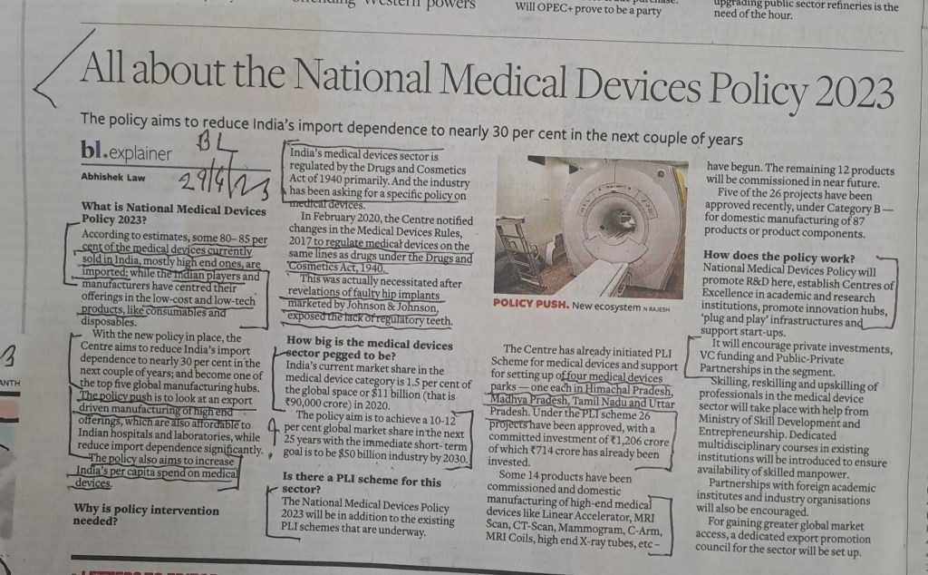 ЁЯЩПЁЯЩПЁЯЩПЁЯЩПЁЯЩПIndia imports 80-85% of medical devices–[2] Government unveils National Medical Devices Policy which aims to achieve 10/12% global share [ from present 1.5% ] Courtesy BusinessLine 29.4.23