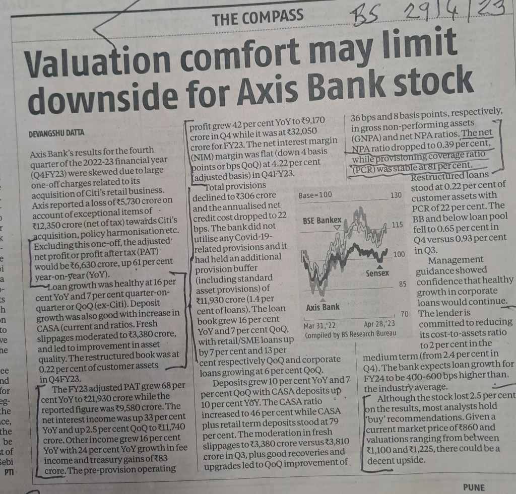 ЁЯЩПAxis Bank –is it opportune time to buy ? Courtesy Business Standard