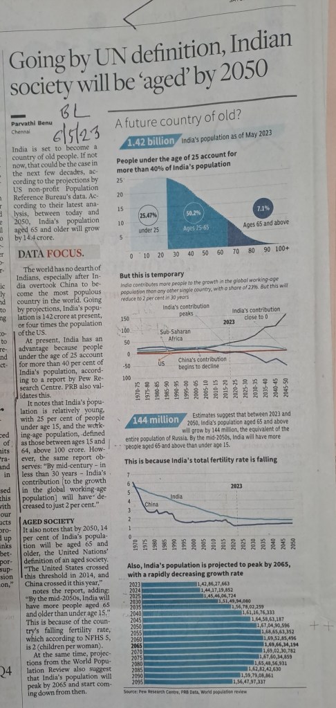 Related to India [1] People under the age of 25 account for more than 40% of India’s population [2] 25% of People under the age of 15 [3] working age population–defined as those between 15 and 64– is above 100 crore Courtesy BusinessLine 6.5.23