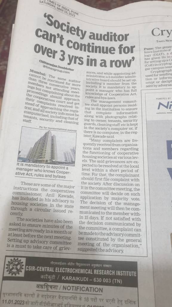 सोसायटी बाबत महत्त्वाची माहिती–Courtesy Times of India — 13.5.23