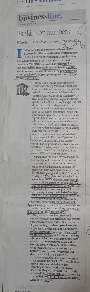ЁЯЩПЁЯЩПЁЯЩПЁЯЩПЁЯЩПRBI flags concerns on window dressing etc Courtesy BusinessLine 30.5.23