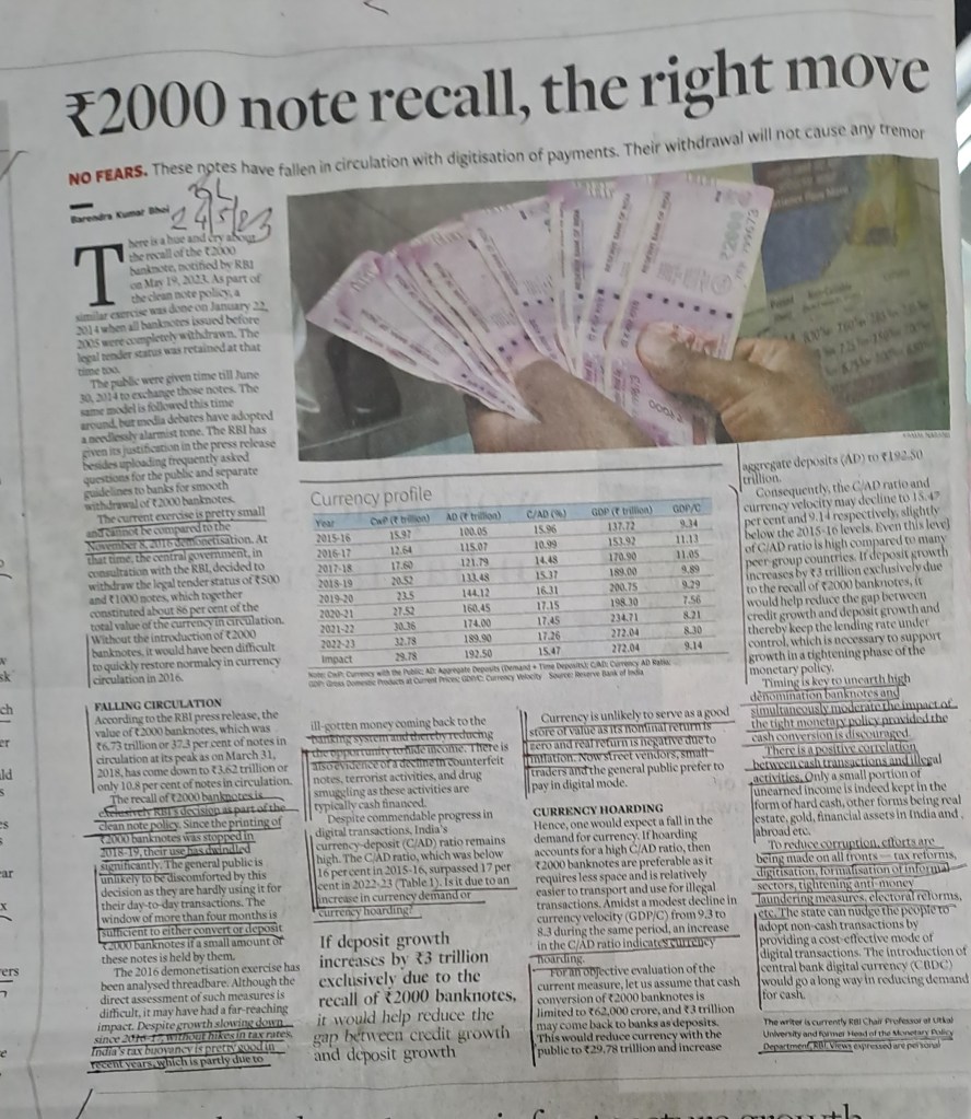 ЁЯЩПRecall of 2000 notes–an opinion which must be understood–Courtesy BusinessLine 24.5.23