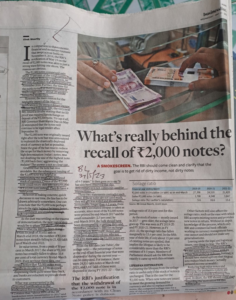 ЁЯЩПRecall of 2000 notes — what could be the real reason? Courtesy BusinessLine 31.5.23