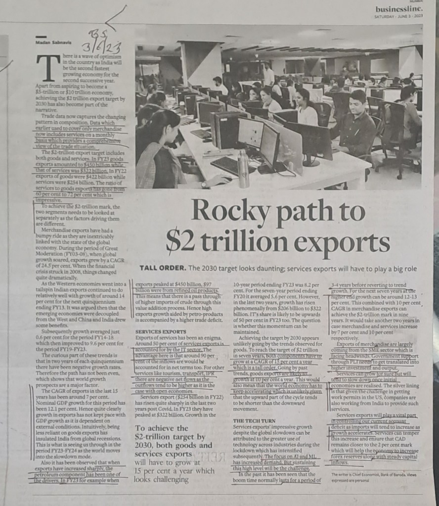 ЁЯЩПЁЯЩПЁЯЩПЁЯЩПЁЯЩПExports target feasible? Courtesy BusinessLine 3.6.23