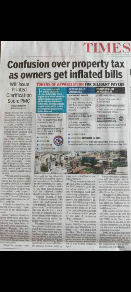 महानगर पालिका कर बिले– काळजी करण्या सारखी बाब– सौजन्य Times of India–8.6.23