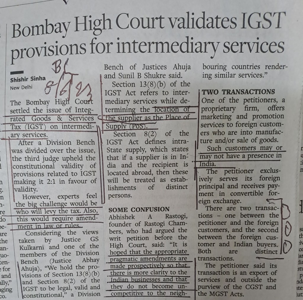 Issue — one of the petitioners–a proprietary firm , offers marketing and promotion services to foreign customers who are into manufacture and / or sale of goods. [2] Such customers may or may not have a presence in India.