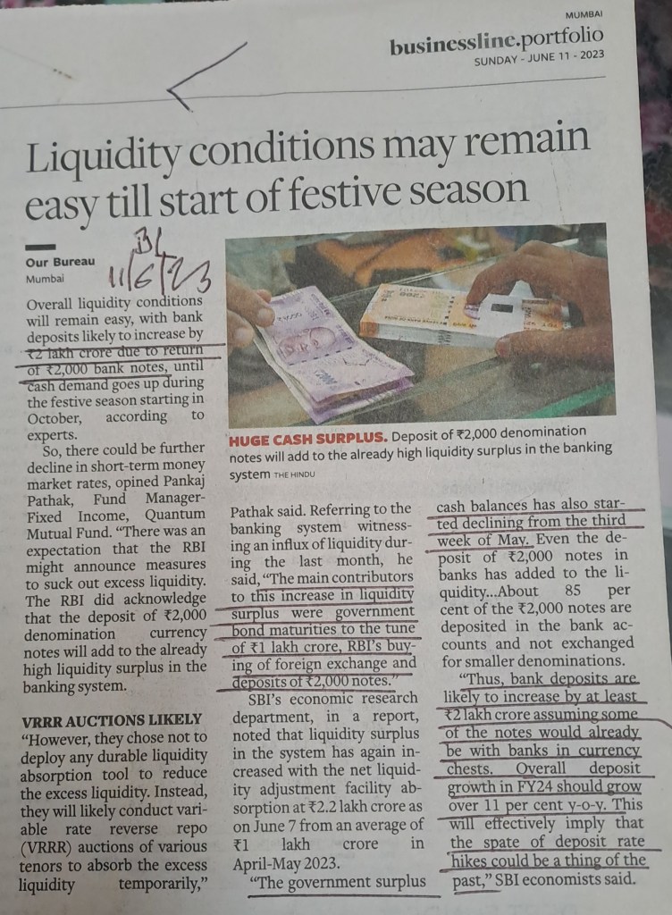 ЁЯЩПLiquidity–RBI views — Courtesy BusinessLine 11.6.23