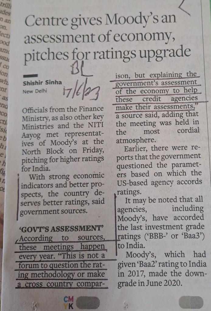 Hope ” Moody’s ” is in good mood [ ЁЯША ]to upgrade Indian Economy rating –Courtesy BusinessLine 17.6.23