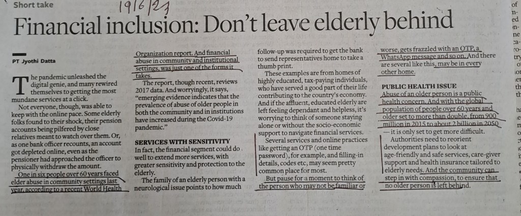 Financial inclusion—elderly persons –Courtesy BusinessLine 18.6.23
