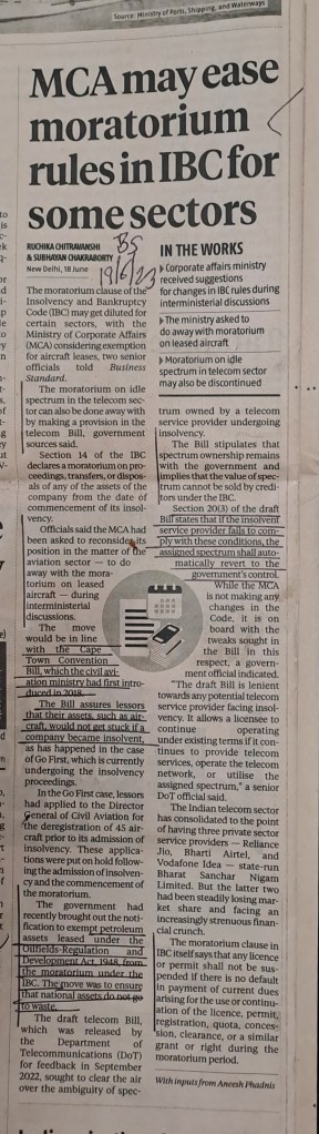 IBC 2016 — amendments on cards– Courtesy Business Standard 19.6.23