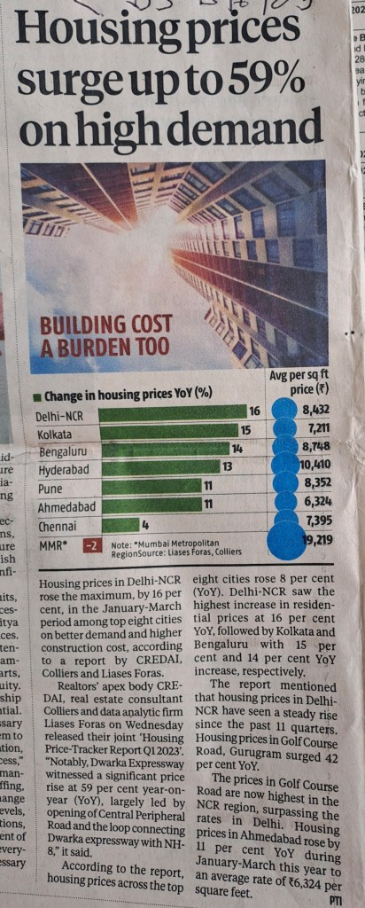 Prices surge on increase in demand for houses –Courtesy Business Standard