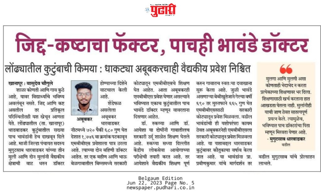 बातमी लक्ष वेधून घेणारी! पाचही भावंडे डॉक्टर सौजन्य पुढारी
