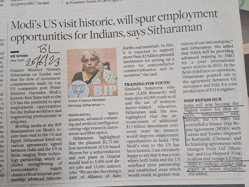 India will now become the biggest centre for ship repairs —[ invite reference to underlined portion ] Courtesy BusinessLine 26.6.23