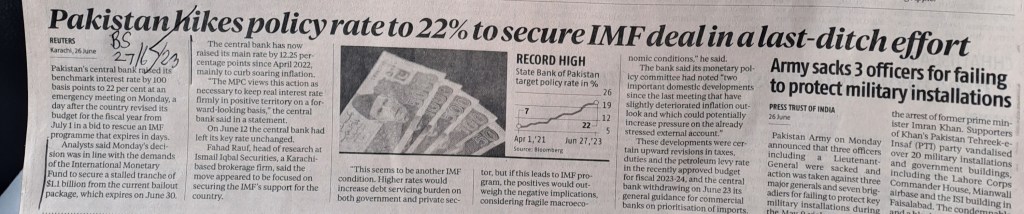 ЁЯЩПPakistan is forced to hike policy rate to 22% –to secure $ 1.1 billion IMF package! Courtesy Business Standard 27.6.23